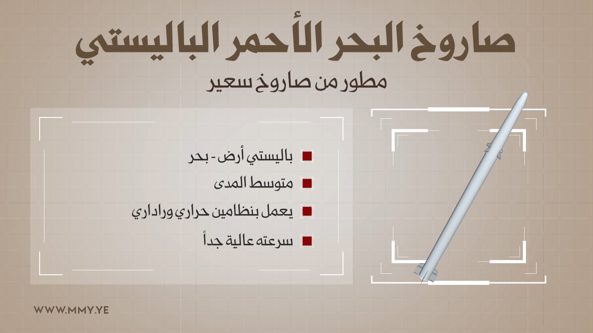 وأشارت المصادر إلى أن صاروخ “البحر الأحمر” هو الصاروخ الذي أشار إليه الرئيس مهدي المشاط في خطابه بالعرض العسكري “وعد الآخرة” وقال حينها بإننا قادرون على ضرب أي مكان في خليج عدن أو في البحر العربي من أي نقطة إطلاق في البر باليمن.