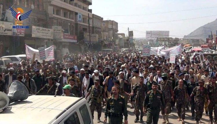 ودعا بيان المسيرة تحالف العدوان إلى وقف عدوانه على اليمن، وإنهاء الحصار والاحتلال، ومعالجة ملفات الحرب والكف عن المؤامرات الدنيئة الهادفة لاستقطاع أجزاء من البلاد.