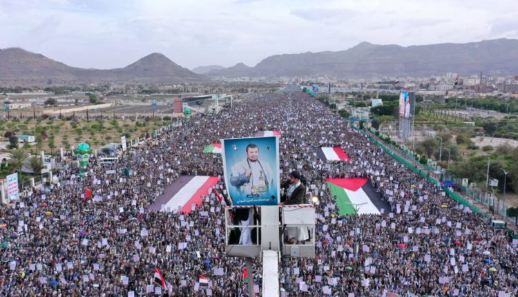 مسيرة جماهيرية كبرى بالعاصمة صنعاء تأكيدا على استمرار الصمود في مواجهة العدوان الأمريكي الصهيوني