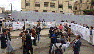 صنعاء | وقفة أمام مكتب الأمم المتحدة للتنديد بالاستهداف الممنهج لقطاع السياحة في اليمن