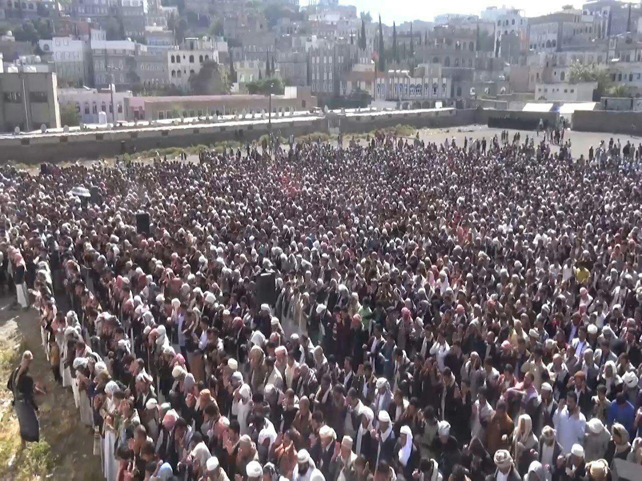 جماهير غفيرة تشارك مراسم تشييع مفتي إب بينها شخصيات تمثل قائد الثورة ” صور”