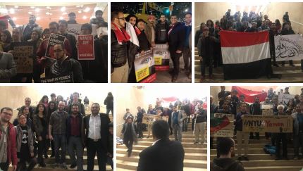 شاهد بالصور .. وقفة بجامعة نيويورك الأمريكية تطالب بوقف العدوان على اليمن