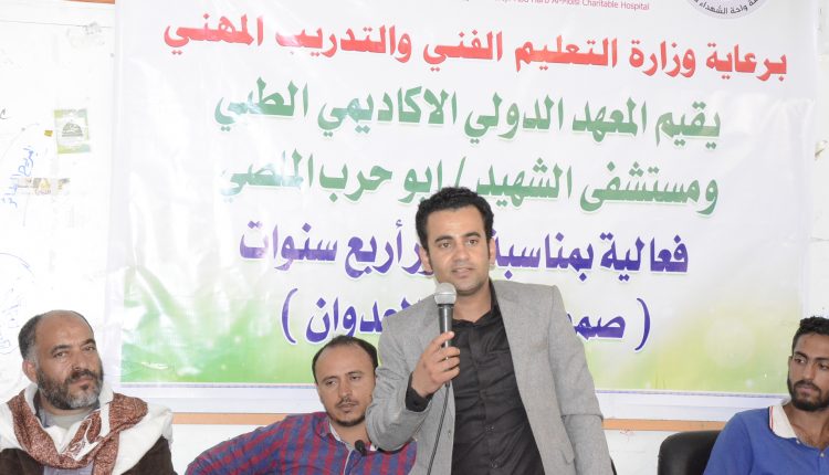 برعاية وزارة التعليم الفني والتدريب المهني نظم المعهد الدولي الأكاديمي الطبي ومستشفى الشهيد أبو حرب الملصي بمديرية سنحان محافظة صنعاء اليوم الثلاثاء فعالية ثقافية وخطابيه بمرور 4 أعوام من الصمود الأسطوري في مواجهة العدوان السعودي الأمريكي.