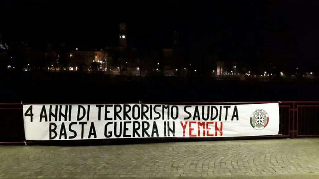 وقال محمد علي الحوثي في تغريدة له مساء اليوم” مائة لافتة في شوارع ايطاليا تنديدا بالعدوان الأمريكي البريطاني السعودي الإماراتي وحلفائهم على اليمن.