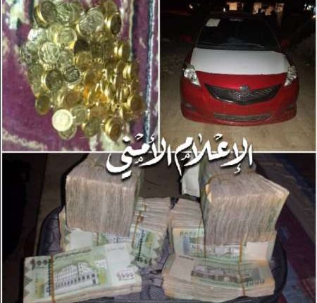حيث ضبط بحوزتهم ( 330 جنيه ذهب ومبلغ 2مليون و200 الف ريال ، وسيارة