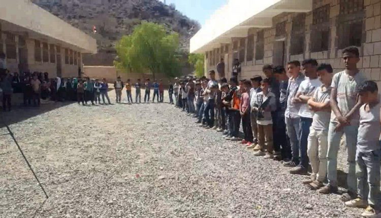 وقفات احتجاجية بمدارس مديرية دمت بالضالع للتنديد باستمرار العدوان على المدارس