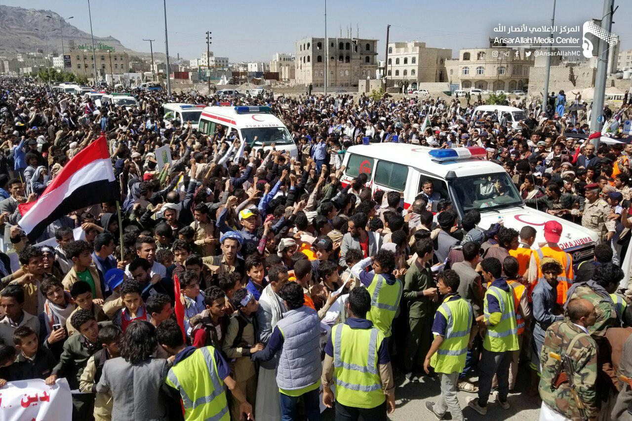 واستنكر المشيعون استمرار تحالف العدوان في استهداف المدارس والأعيان المدنية وتدمير البنية التحتية ومقومات الحياة منذ أربع سنوات.. لافتين إلی أن الدماء التي سفكت غدراً وعدواناً في مدارس سعوان وغيرها لن تذهب هدراً وسيتم الاقتصاص لها عاجلا ً أو آجلاً.