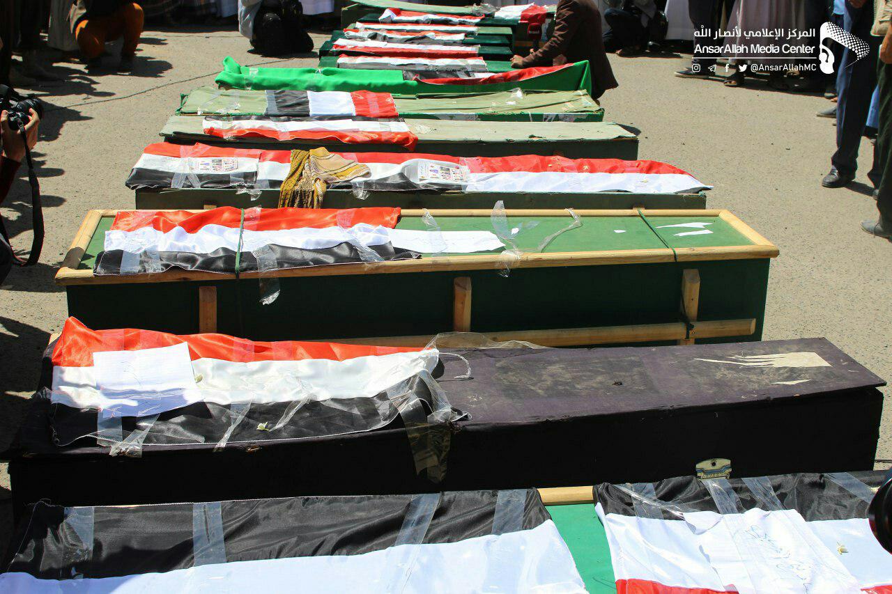 ومن المنطقة التي ارتكب فيها طيران العدوان السعودي الأمريكي الجريمة في سعوان شرق العاصمة صنعاء أقيمت مراسم التشييع.
