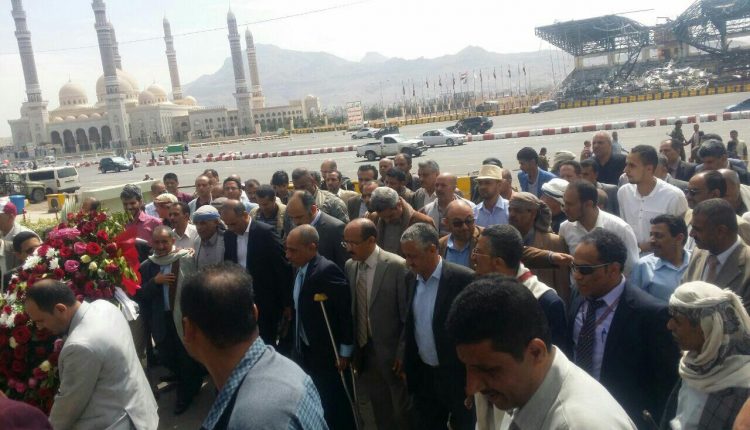 زار وزير الخدمة المدنية والتأمينات طلال عقلان وقيادات وزارة الخدمة اليوم ضريح الرئيس الشهيد صالح الصماد ورفاقه بميدان السبعين في الذكرى السنوية الأولى لاستشهاده.