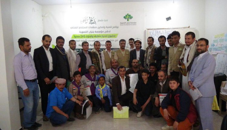 صنعاء .. “بنيان” تختتم مشروع تدريبي لرفع قدرات أعضاء منظمات المجتمع المدني