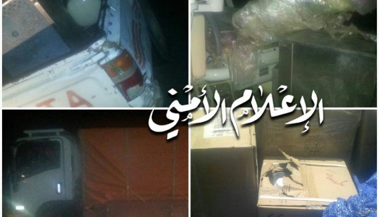 وفي ذات المديرية ضبط رجال الأمن في نقطة قحازة تم ضبطت شاحنة دينا تحمل على متنها عدد ٢١٠ كراتين من الأدوية المهربة كانت متجهة إلى العاصمة، وهذه الادوية المهربة تتبع مؤسسة الزاهر.