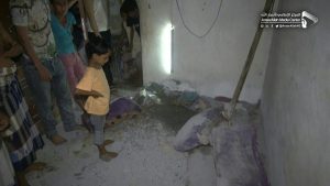 وقالت مصادر أمنية أن قوى العدوان استهدفت بقذيفة هاون منزل مواطن في حي 7 يوليو ما أدى جرح أب وابنته وتضرر منزلين, بالأضافة إلى أضرار بالغة في المنزل وممتلكات المواطنين المجاورة للمنزل المستهدف.