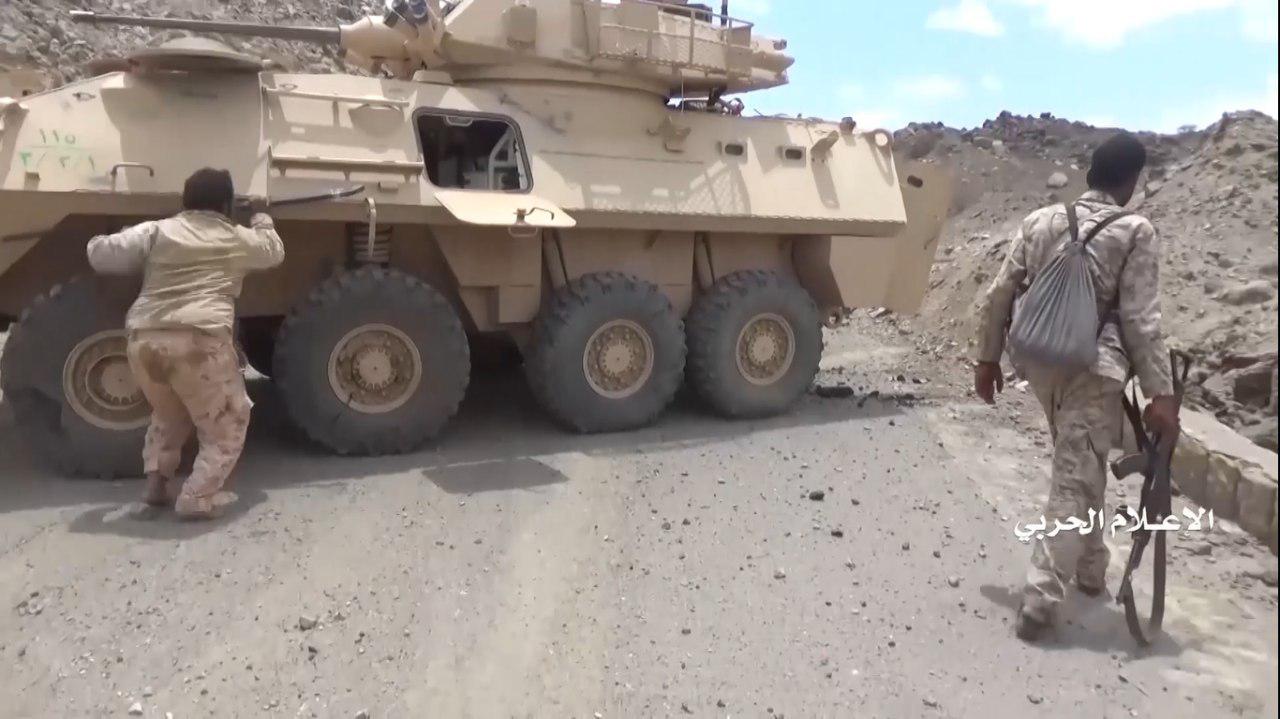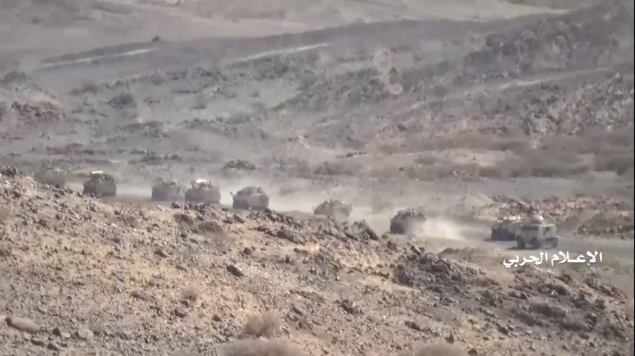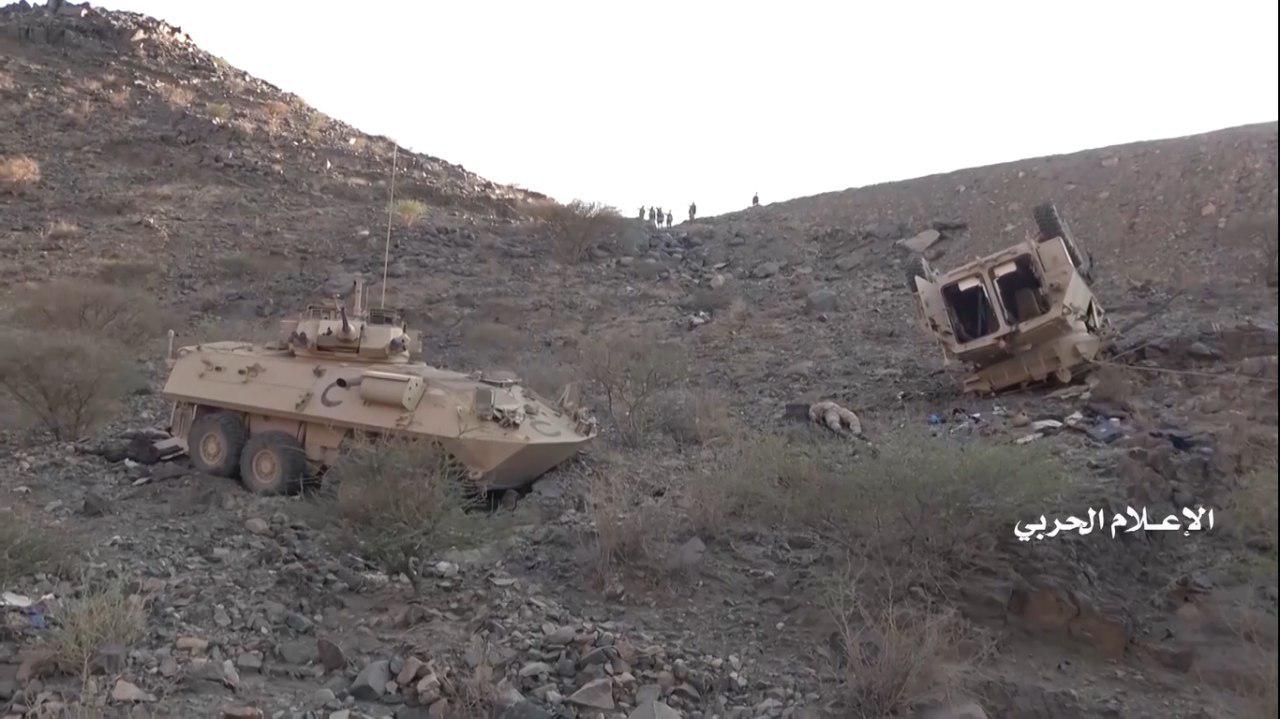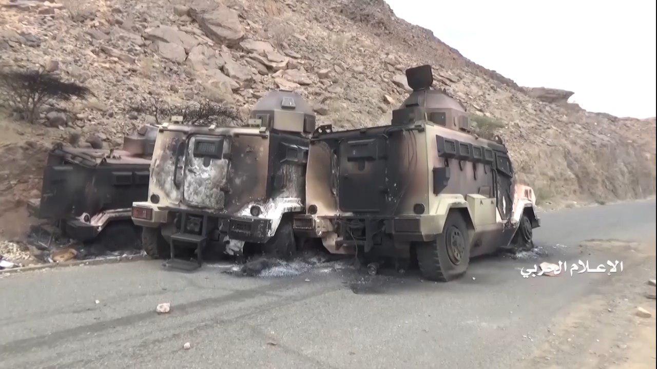 وفي مقاطع الفيديو تم استعراض الأعداد الكبيرة للمدرعات والآليات العسكرية التي تم اغتنامها وقام مرتزقة الجيش العدو السعودي بالنزول من عليها وتسليمها وتسليم أنفسهم.
