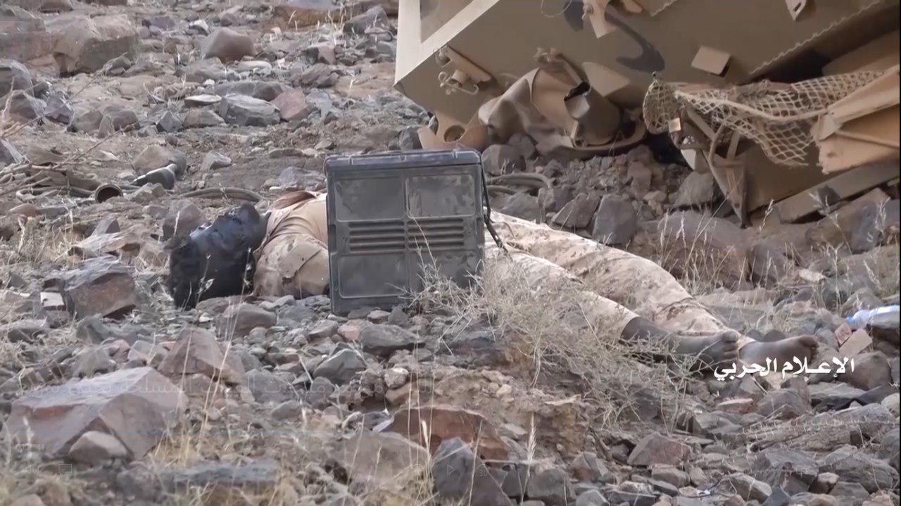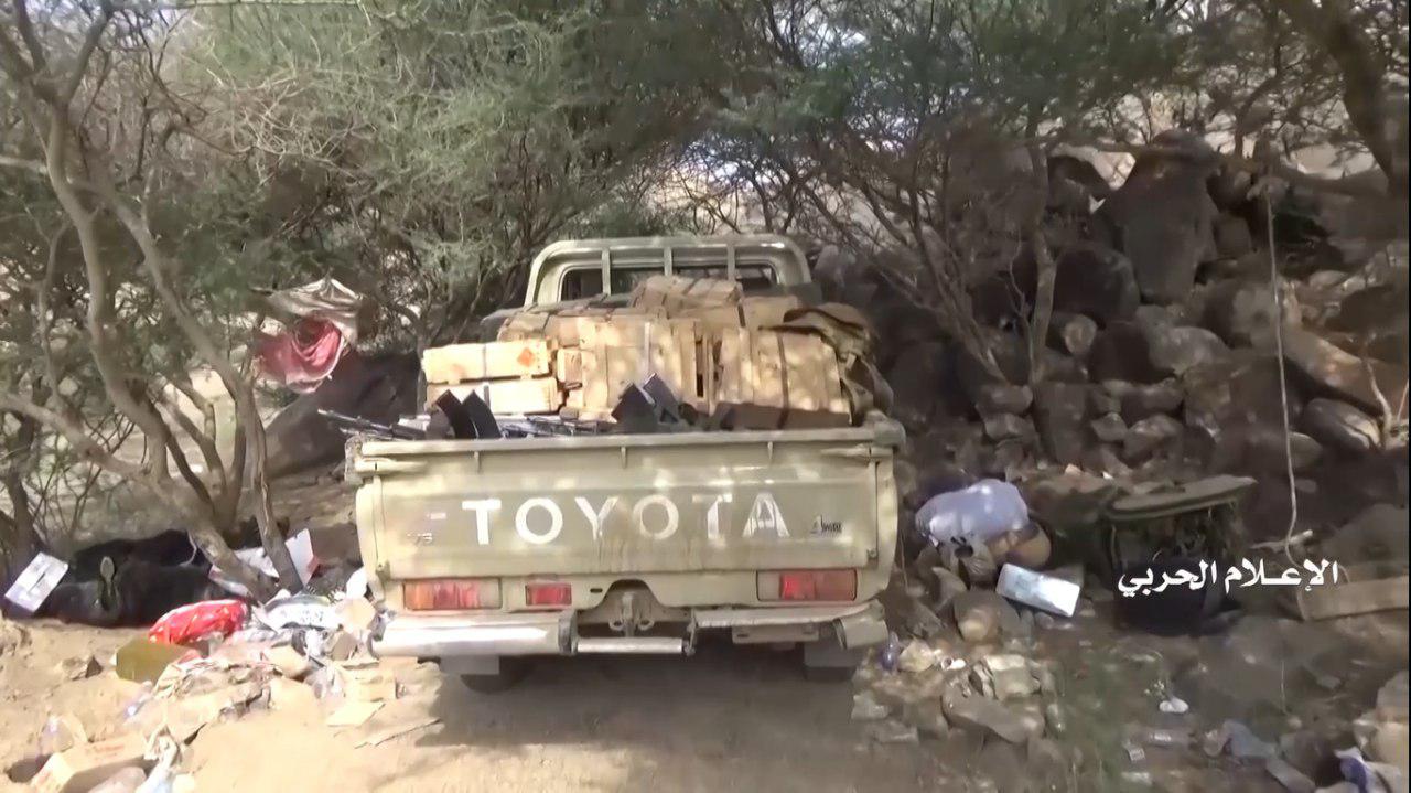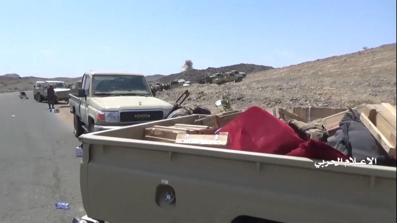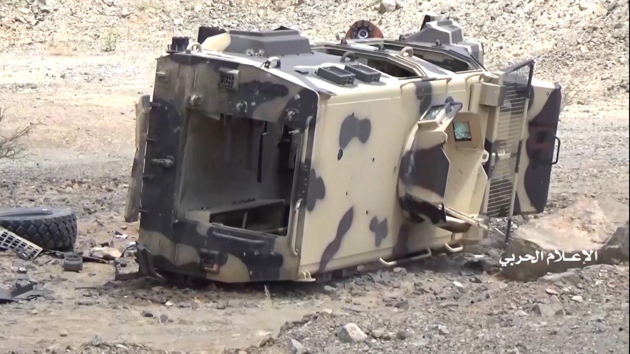 وفي مقاطع الفيديو تم استعراض الأعداد الكبيرة للمدرعات والآليات العسكرية التي تم اغتنامها وقام مرتزقة الجيش العدو السعودي بالنزول من عليها وتسليمها وتسليم أنفسهم.