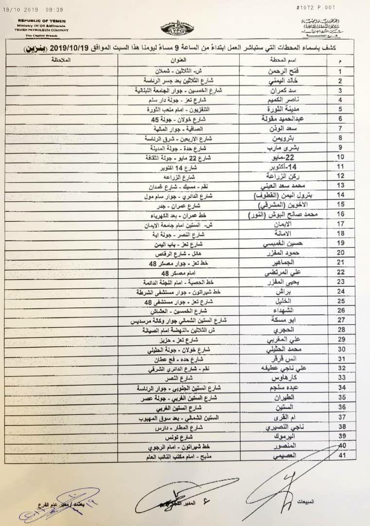 عاجل بالأسماء | شركة النفط تعمم أسماء 41 محطة للبدء في العمل من الساعة التاسعة مساء اليوم بكل طاقتها