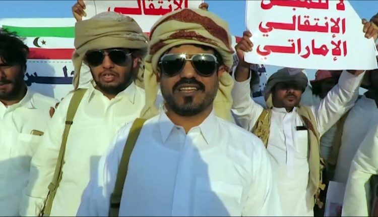 نظمت قبيلة زعبنوت في مديرية شحن بمحافظة المهرة وقفة احتجاجية للتعبير عن رفض الوصاية السعودية على منفذ شحن.