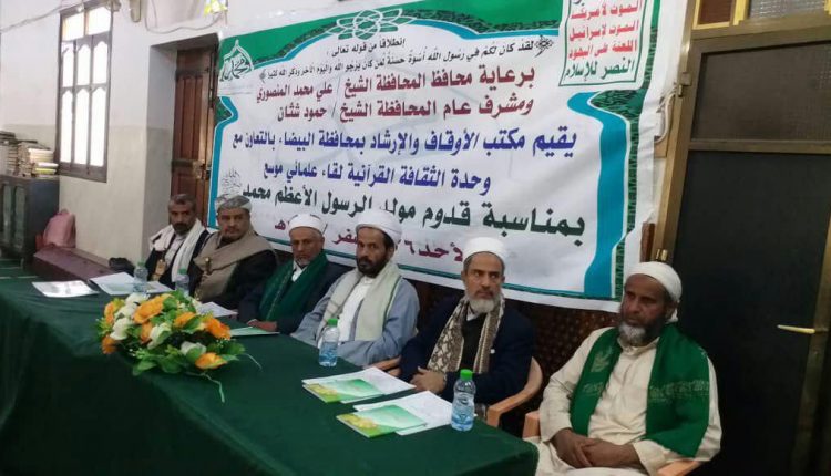 بدوره اعتبر مدير عام مكتب الأوقاف والإرشاد القاضي محمد حمود الظرافي الاحتفال بالمولد النبوي محطة للتزود من سيرته العطرة ونهجه الجهادي في مواجهة تكالب الاعداء على الأمة الإسلامية.