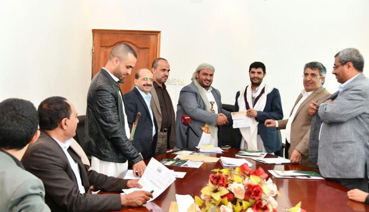 سلم رئيس الهيئة العامة للزكاة الشيخ شمسان أبو نشطان اليوم رئيس مؤسسة أحرار اليمن لرعاية أسر الاسرى والمفقودين وتأهيل المحررين عبدالسلام حنش، المرحلة الثانية من المساعدات النقدية لأسر الأسرى والمفقودين.