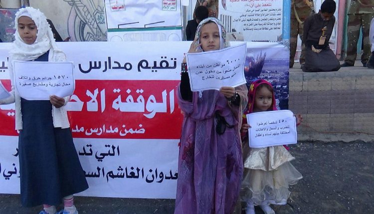 عمران: وقفة احتجاجية لمدارس مكة الأهلية تنديداً بجرائم تحالف العدوان