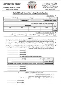 البنك المركزي اليمني يوجه دعوة هامة الى جميع المواطنين Last updated ديسمبر 21, 2019 1٬073 Share أفق نيوز دعا البنك المركزي المواطنين التوجه إلى النقاط المعتمدة المحددة لتسليم النقد غير القانوني. وأوضح البنك المركزي اليمني أن لهم الحق في استلام التعويض من النقد الالكتروني أو من العملة الوطنية. (استمارة طلب تعويض العملة) البنك المركزي يوجه دعوة هامة الى جميع المواطنين 1٬073 Share FacebookTwitterGoogle+ReddItWhatsAppPinterestEmail