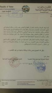 كما أكدت الغرفة التجارية الصناعية بالأمانة والاتحاد العام أن القطاع الخاص يؤدي رسالته الوطنية في تأمين الإمدادات الغذائية والدوائية والكسائية والاستهلاكية للسوق اليمنية بكل إخلاص وتفان، استشعارا منه بواجبه تجاه الشعب اليمني.