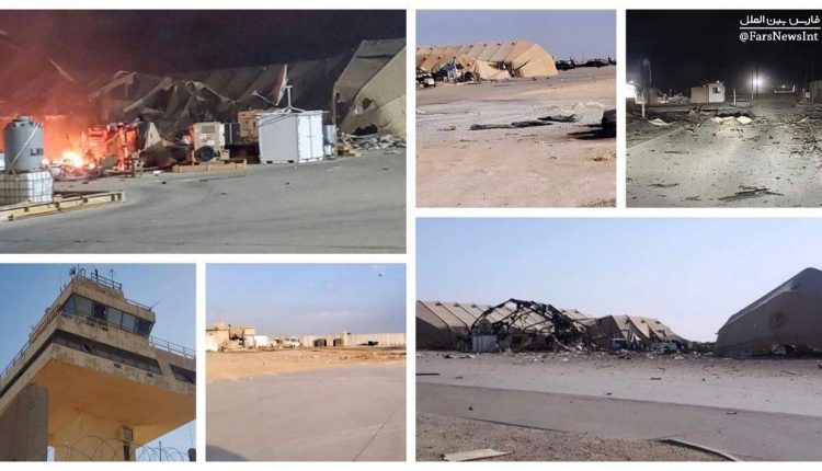 نشر صحفي عراقي اليوم الخميس مجموعة من الصور قال انها لقاعدة عين الاسد الامريكية في الانبار بعد الرد الصاروخي الايراني على الاعتداء الامريكي الاثم الذي ادى لاغتيال قائد فيلق القدس التابع لحرس الثورة الإسلامية الفريق الشهيد قاسم سليماني ورفاقه.