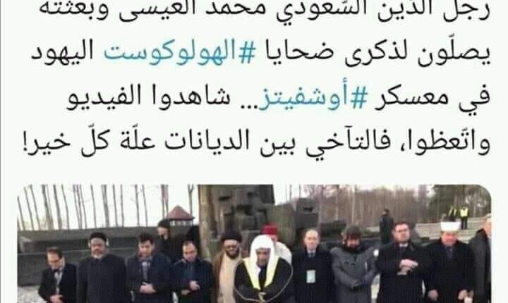 وكان المدعو أمين رابطة العالم الإسلامي محمد العيسى الذي شغل سابقا منصب وزير العدل السعودي زار على رأس وفد مرافق له يوم الخميس 23 يناير الجاري معسكر الإبادة النازي السابق التابع لليهود “أوشفيتز بيركينو” في بولندا، في خطوة جريئة وغير مسبوقة نحو التطبيع باسم الإسلام والقيم الإنسانية.