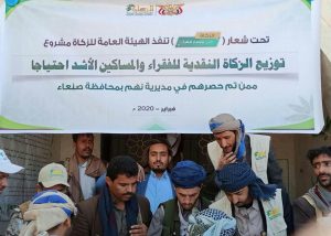 دشنت الهيئة العامة للزكاة اليوم صرف الزكاة النقدية للأسر أشد فقراً بمديرية نهم محافظة صنعاء.