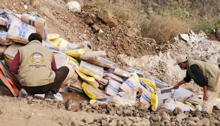 شاهد.. المواصفات والمقاييس بإب تتلف أطنان من المواد الغذائية منتهية الصلاحية