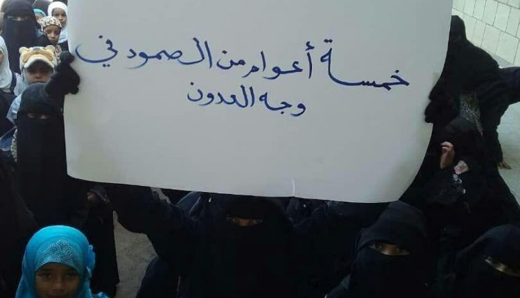 واختتمت الفعاليات بوقفات احتجاجية رفعت خلالها الشعارات واللافتات المنددة بجرائم العدوان البشعة المستمرة للعام الخامس على بلدنا وشعبنا والمستنكرة للصمت الدولي المخزي وطالبت الوقفات الأمم المتحدة بالإيفاء بتعهداتها في صرف مرتبات المعلمين والموظفين.