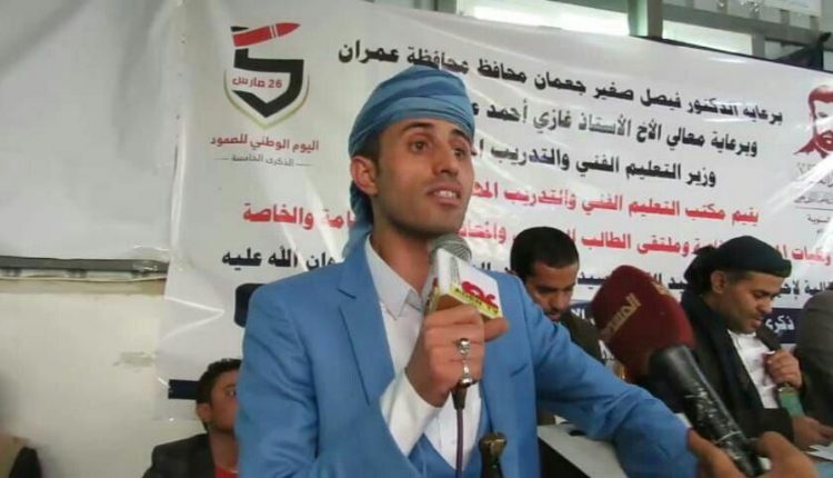 اقام مكتب التعليم الفني وكليات المجتمع الخاصة وملتقى الطالب الجامعي والمعاهد الفنية العامة والخاصة بمحافظة عمران اليوم فعالية بمناسبة الذكرى السنوية للشهيد القائد وكذاء الاحتفال باليوم الوطني للصمود بمرور خمسة اعوام من الصمود الاسطوري في وجه العدوان الغاشم.