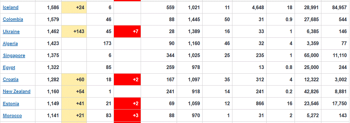 وإليكم جدول لبعض الدول التي لم تسجل حالات اصابة ووفاة ليوم الثلاثاء 7 أبريل
