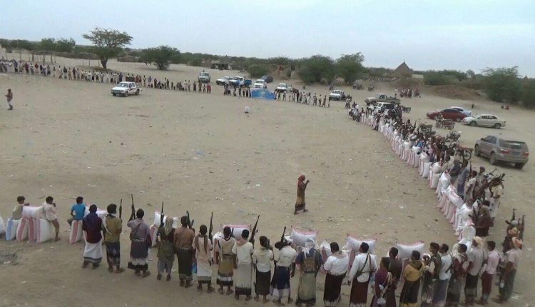 المشاركون في القافلة أكدوا استمرار أبناء المديرية في دعم ومساندة أبطال الجيش واللجان الشعبية وتقديم المزيد من المال والرجال حتى دحر الغزاة والمحتلين.