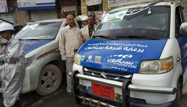 أمانة العاصمة تعلن بدء حملة سبأ فون لتعقيم صنعاء ضد كورونا