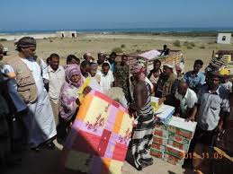 دشن محافظ أرخبيل سقطرى سعيد سالم باحقيبة ومعه رئيسة مؤسسة سبره الاجتماعية التنموية لينا العبدول اليوم الأربعاء 11 نوفمبر 2015 توزيع المواد الاغاثية للمتضررين من إعصاري تشابالا وميج في المحافظة.