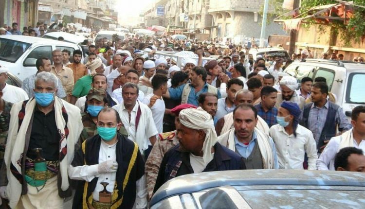 وتقدم المشيعون القائم بأعمال المحافظ محمد عياش قحيم ووكيلا المحافظة أحمد البشري وعلي قشر ومدير عام الشرطة العقيد هادي عبدالخالق وعدد من المسؤولين في السلطة المحلية والمكاتب التنفيذية والمشايخ والأعيان والشخصيات الإجتماعية وأصدقاء وزملاء الفقيد ومحبيه وجمع غفير من المواطنين.