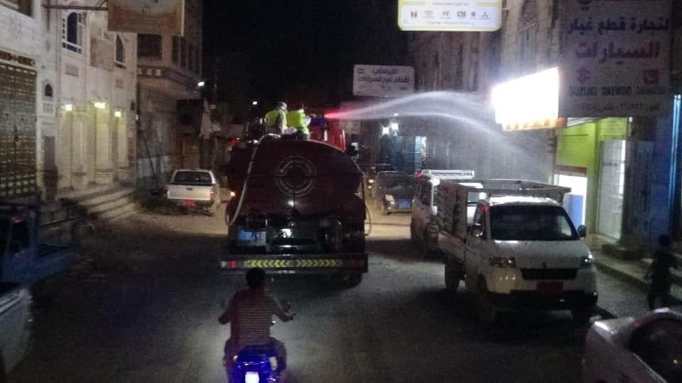 فقد قامت فرق وعربات الدفاع المدني برش المطهرات للمحال والأحياء في مديرية معين بالعاصمة صنعاء حيث شملت عملية الرش شارع هايل وشارع 20 والرباط، والرقاص وعدد من الأحياء السكنية في المديرية.