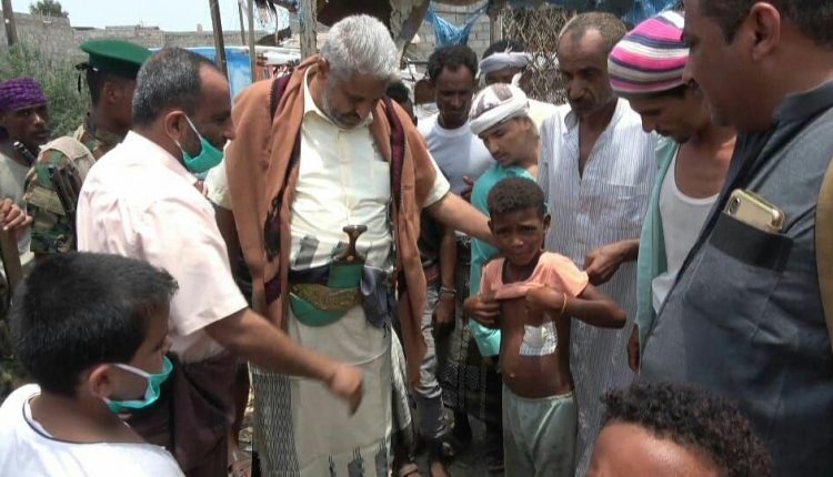 قحيم يتفقد حي الزهور الذي أستهدفه مدفعية مرتزقة العدوان في مديرية الحالي بمحافظة الحديدة