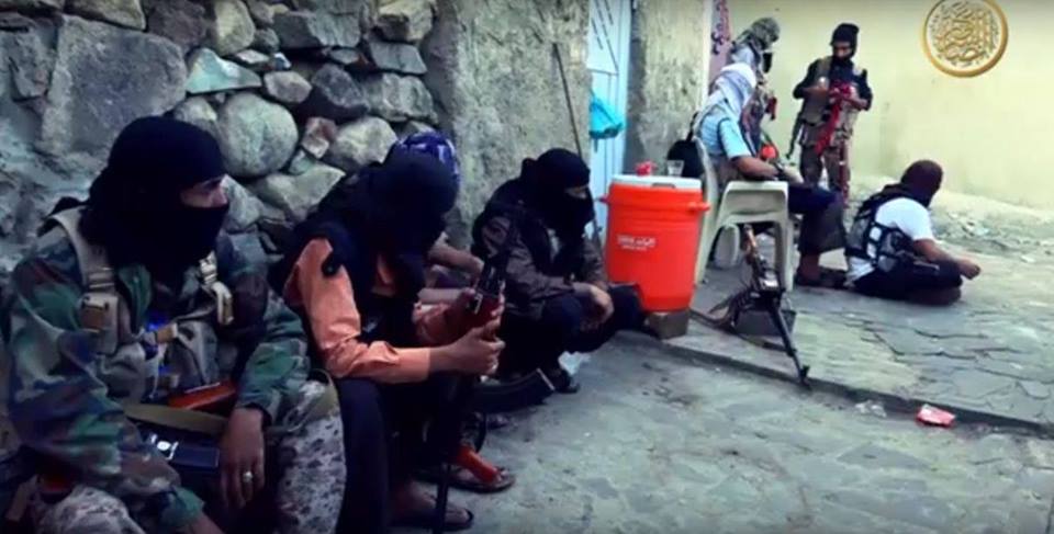 وقام التنظيم ببث تسجيل مصور للقيادي في تنظيم القاعدة جلال بلعيدي، يتحدث فيه عن “انتصارات المجاهدين” في مختلف المناطق وصولاً إلى جبهة تعز، تزامن ذلك مع انتشار تسجيلات صادمة في – حينها – بعمليات قتل وسحل وتمثيل بجثث أسرى بتهمة “الحوثية” في المدينة.