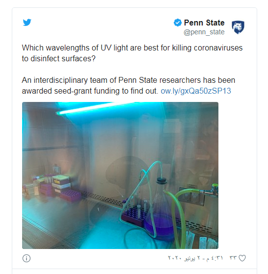 وحصل الباحثون على 90 ألف دولار من التمويل الأولي، لتحديد “منطقة المعتدل” لكثافة الأشعة فوق البنفسجية ووقت التعرض، للقضاء على الفيروسات المحمولة جوا. وستجرى هذه المرحلة من الاختبار في مختبر السلامة البيولوجية المستوى 2 في جامعة Park بولاية بنسلفانيا.