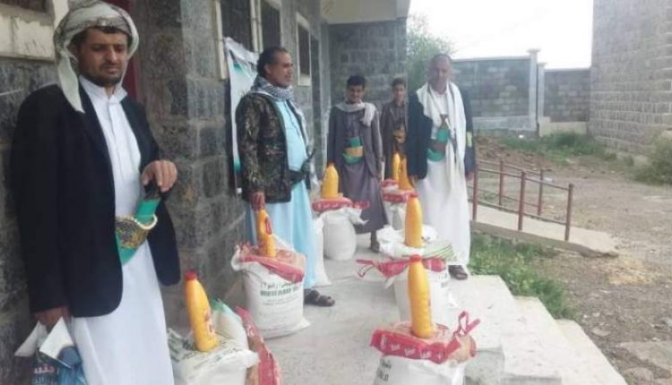 حجة: توزيع سلال غذائية لأسر الشهداء في مديرية الشاهل