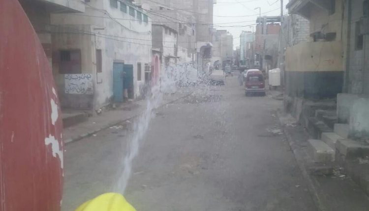 حيث نفذت اليوم فرق وعربات الدفاع المدني بحملة رش واسعة للمطهرات في الشوارع والأحياء السكنية في مديرية صنعاء القديمة بالعاصمة.