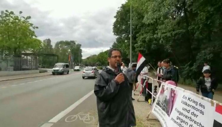 احتشد العديد من أبناء الجالية اليمنية وعدد اخر من الناشطين العرب والالمان، اليوم السبت، أمام السفارة السعودية بالعاصمة الألمانية برلين، للتنديد باستمرار العدوان والحصار الجائرين على اليمن.