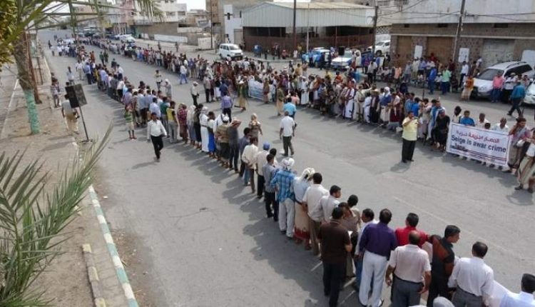 ندد أبناء مدينة الحديدة، اليوم الأحد، بالجرائم التي يرتكبها تحالف العدوان السعودي الأمريكي ومليشيا الإصلاح بمحافظات مأرب والجوف وحجة، معتبرين هذه الجرائم تتنافى مع الأعراف والمواثيق والقوانين الدولية والإنسانية.