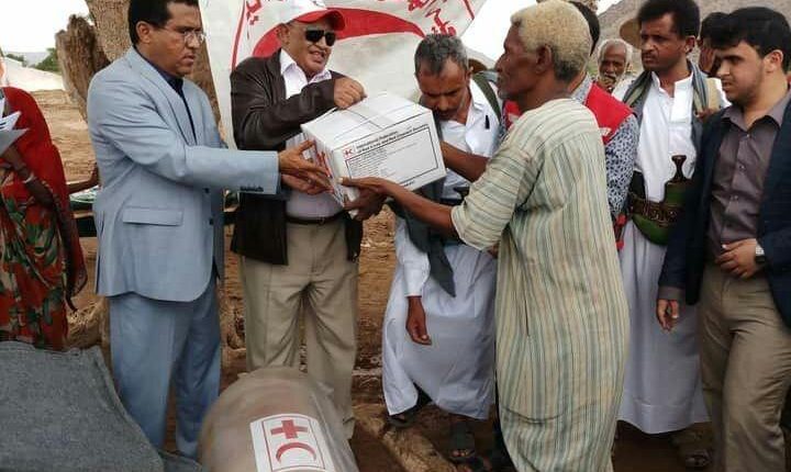تدشين توزيع مواد إيوائية للمتضررين من السيول في بني قيس بمحافظة حجة