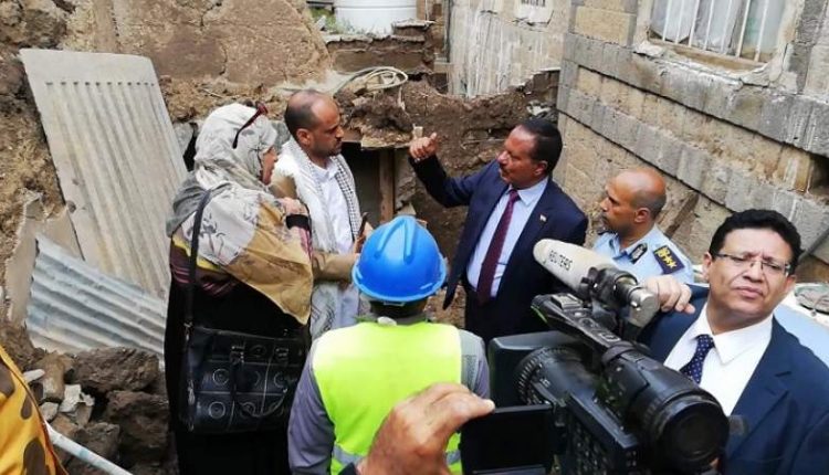 وزير الثقافة يتفقد المنازل المتضررة جراء الأمطار بمدينة صنعاء القديمة