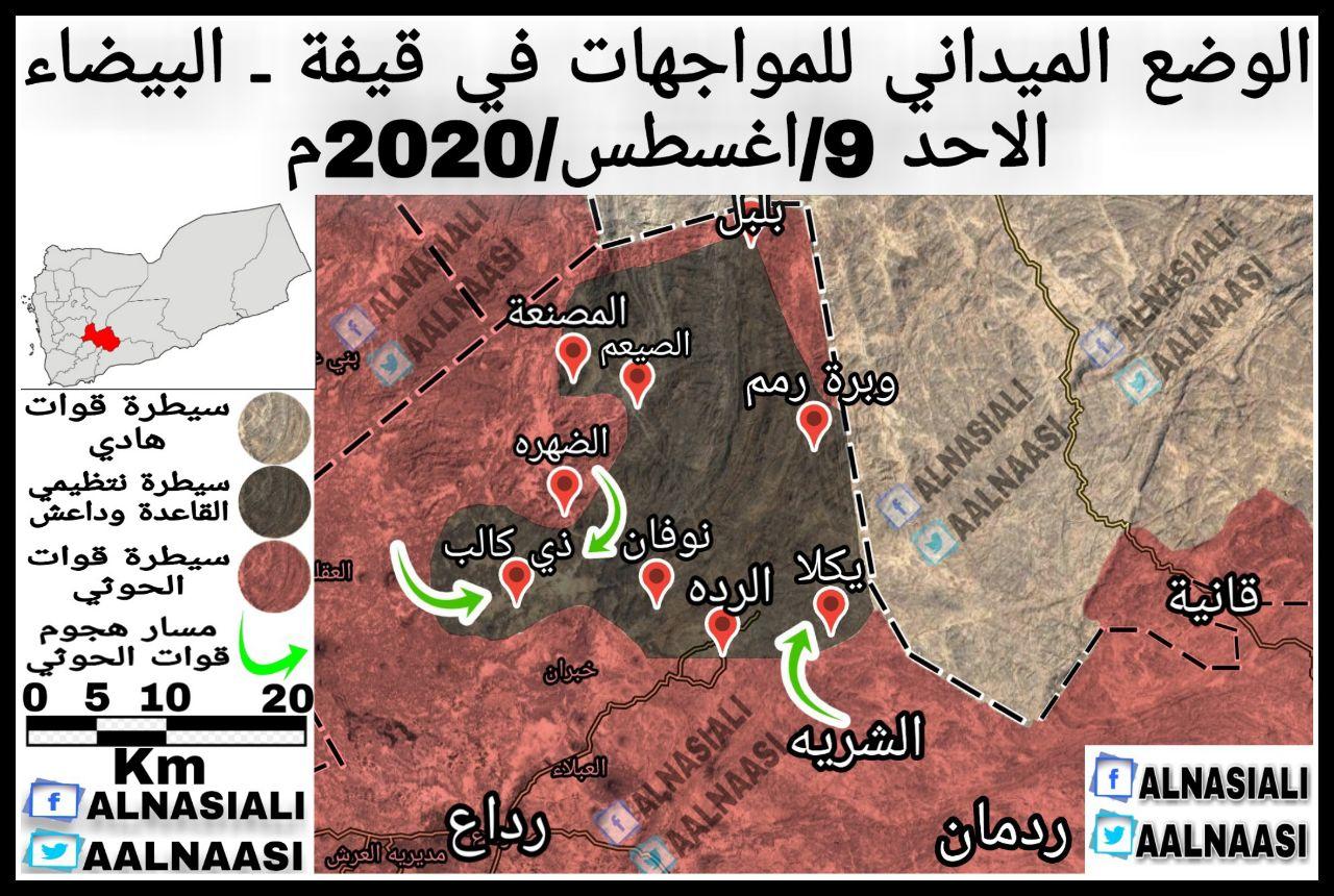 خريطة توضح سيطرتهم/ معسكرات القاعدة وداعش في البيضاء تتوافد لمقاتلة الجيش اليمني