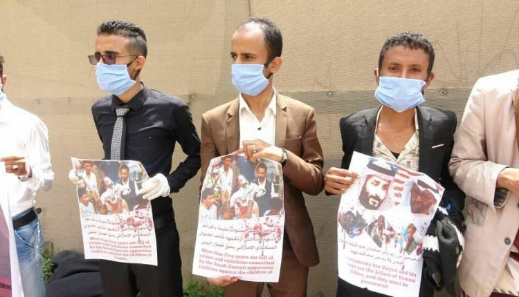 وطالبوا خلال وقفة نظموها أمام مقر منظمة اليونسيف بإب إحياءً للذكرى الثانية لمجزرة أطفال ضحيان بمعاقبة النظاميين السعودي الإماراتي على ما ارتكبوه من جرائم حرب في اليمن وفي مقدمتها جريمة أطفال ضحيان .