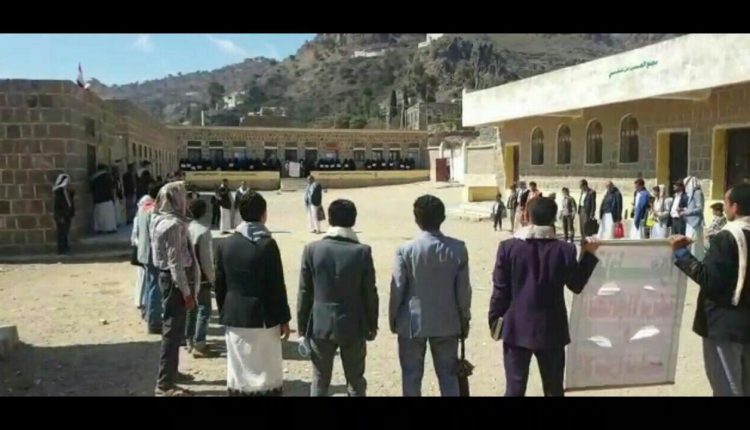 نظم طلاب وطالبات مركزي الفتح وكلية التربية للشهادة الاساسية بمديرية الجبين محافظة ريمة اليوم وقفتين احتجاجيتين في الذكرى السنوية الثانية لمجزرة حافلة ضحيان بصعدة، والتي استهدفت الطلاب، باستمرار جرائم وانتهاكات دول العدوان بحق الشعب اليمني منذ ما يقارب ست سنوات.
