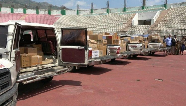 قافلة دوائية من مديرية العدين في محافظة إب للمرابطين في الجبهات